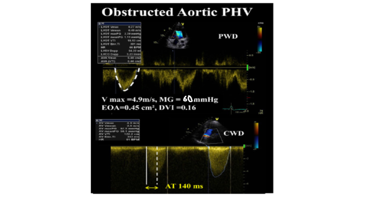 Figure 2: Echocardiogram readings, suggestive of severely stenosed prosthetic aortic valve [5]
