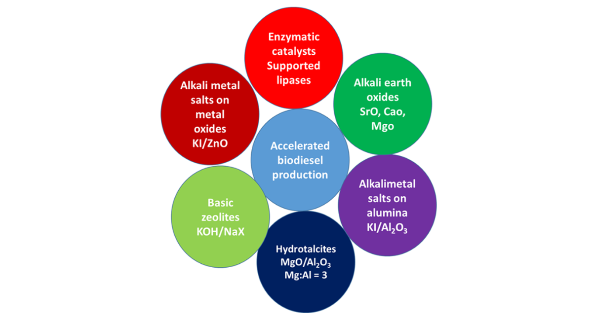 Figure 2: State of the art catalysts developed for the accelerated production of biodiesel via the transesterification reaction.