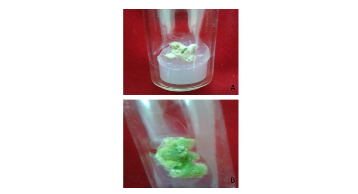 Note: A - On MS with 2.0 mg/l 2,4-D + 0.5 mg/l BAP; B - On MS with 3.0 mg/l NAA + 0.5 mg/l BAP